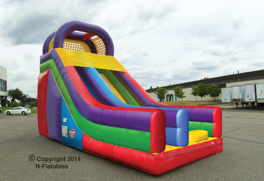 Looking for a thrill? Look no further than our 18-foot slide! You'll feel like a lucky leprechaun sliding with all the colors of the rainbow!